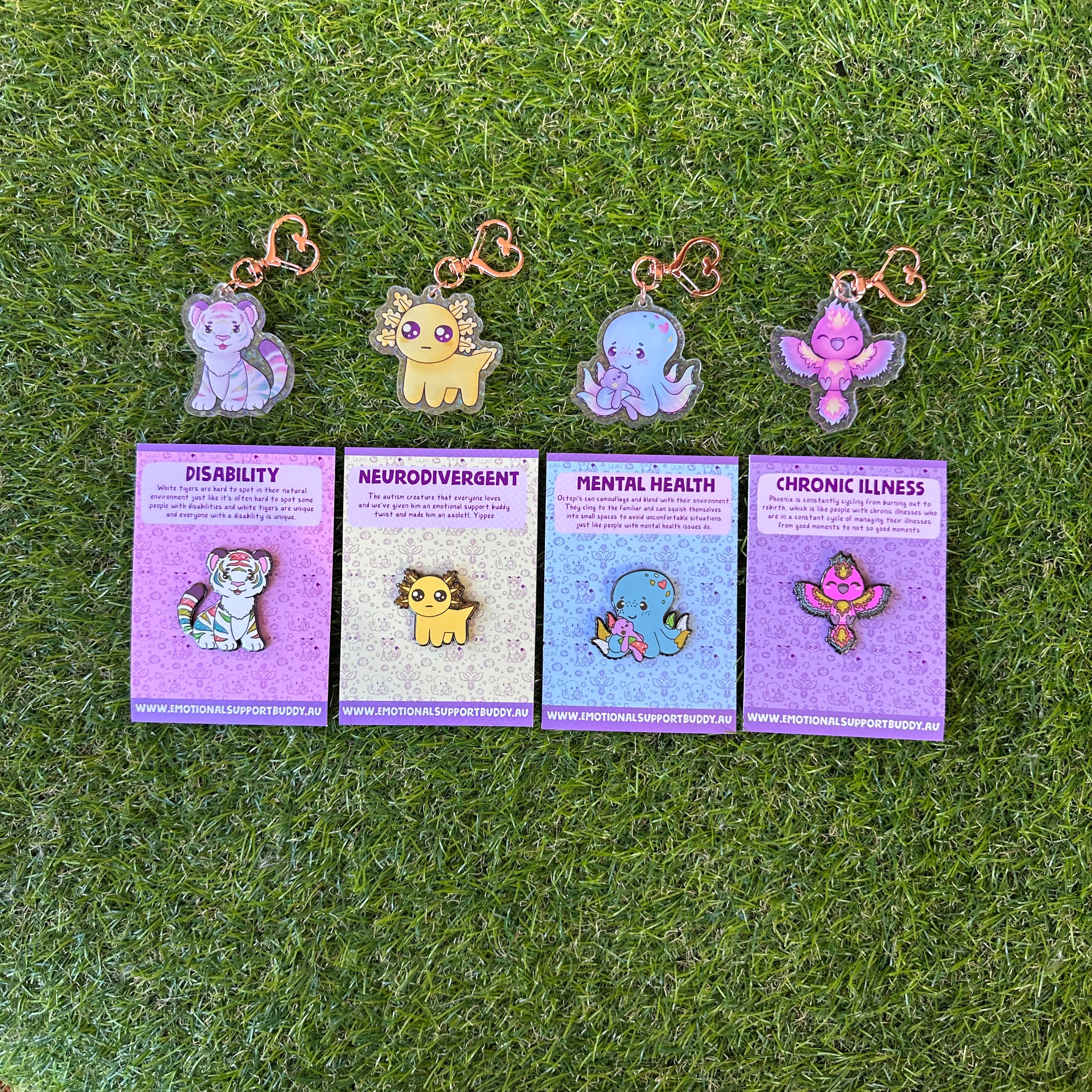 The Emotional Support Buddy is cute and easy to use self care tool. They have been created from our lived experience with anxiety. There are many buddies each with their own meaning. We sell keychains, pins, prints, stickers, and more. Plus a new book called “sometimes my Brain worries”. You can use your buddy to help you focus on your mental health and well-being if you need to, to communicate with others or you can use them just because they’re super cute.